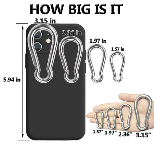 Spring Snap Hooks, 304 Stainless Steel Metal Clip Heavy Duty Rope Connector Small Snap Clamp Key Chain Link Buckle for Hammock Swing Set Outdoor Travel Camping Fishing Hiking