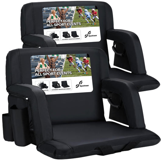 Sportneer Stadium Seats with Back Support: 2.5'' Thick Comfy Cushion 6 Adjustable Angle Bleacher Seat with Armrest - 2 Large Pockets, 2 Cup Holders Stadium Chair for Sport Events Concerts Parks