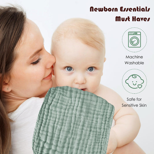 Spotted Play Muslin Burp Cloths 100% Cotton Large 20''x10'' Extra Soft and Absorbent Baby Wash Cloths Spit Up Rags - Baby Burping Cloth for Boys Girls Items(12 Pack Green)