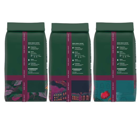 Starbucks Dark Roast Ground Coffee, Variety Pack, 3 bags (12 oz each)