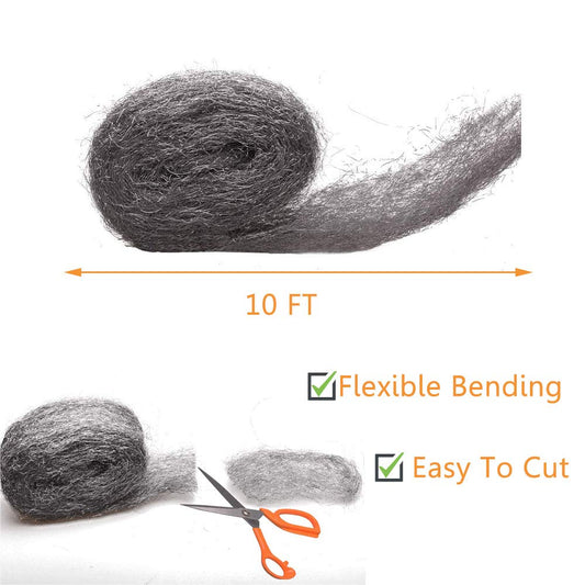 Steel Wool Mice Control, 2 Pack 3" x10 Ft Hole Filler, Gap Blocker, Barrier, Protect Against Animals in Holes Holes, Siding, Pipeline, Vents for Garden, House, Garage