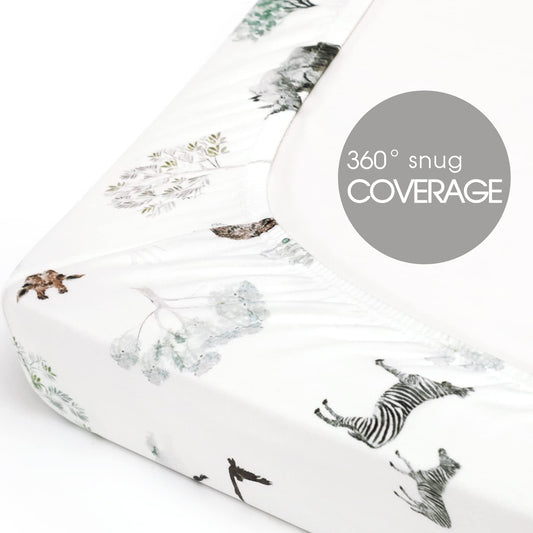 Stretchy Ultra Soft Jersey Knit Pack n Play Sheets Set 3 Pack, Portable/Mini Crib Sheets for Girls and Boys, Universal Fit for Pack N Plays Safe and Snug, Stylish African Savannah Animals Pattern