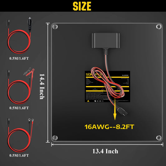 SUNAPEX 12V Solar Battery Charge: Waterproof Portable Solar Panel Kit - Battery Maintainer Trickle Charger - with Upgrade Built in Charge Controller for Car Boat RV Trailer Automotive Motorcycle