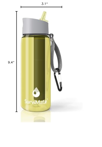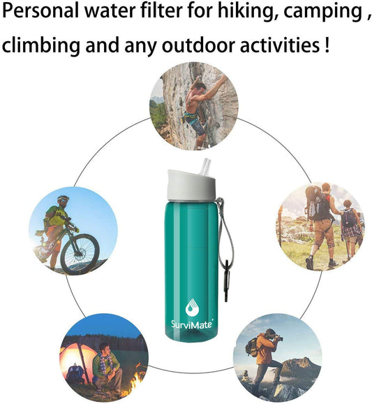 SurviMate Purified Water Bottle for Camping, Hiking, Backpacking and Travel, BPA Free with 5-Stage Intergrated Filter Straw