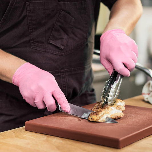 SwiftGrip Nitrile Exam Gloves, 4 Mil, Medium, Cherry Blossom, Food Safe Gloves Disposable Latex Free, Powder Free for Cleaning Supplies, Esthetician, Hair Dye, Tattoo Supplies (Box of 100)