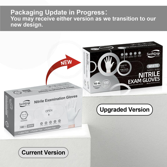SwiftGrip Disposable Nitrile Exam Gloves, 3-mil, Large, Box of 100, White Nitrile Gloves Disposable Latex Free for Medical, Cleaning, Cooking & Esthetician, Food-Safe, Powder-Free, Non-Sterile