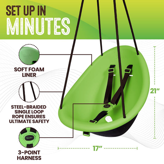 Swurfer Kiwi Toddler Swing – Comfy Baby Swing Outdoor, 3-Point Adjustable Safety Harness, Safe Quick Click Locking System, Foam-Lined Shell, Blister-Free Rope, Age 9 Months and Up, Green