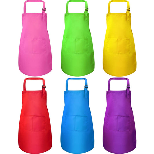 Syhood 6 Pieces Kids Apron with Pocket Adjustable Children Chef Apron for Baking Painting Cooking (Fresh Color, Large)