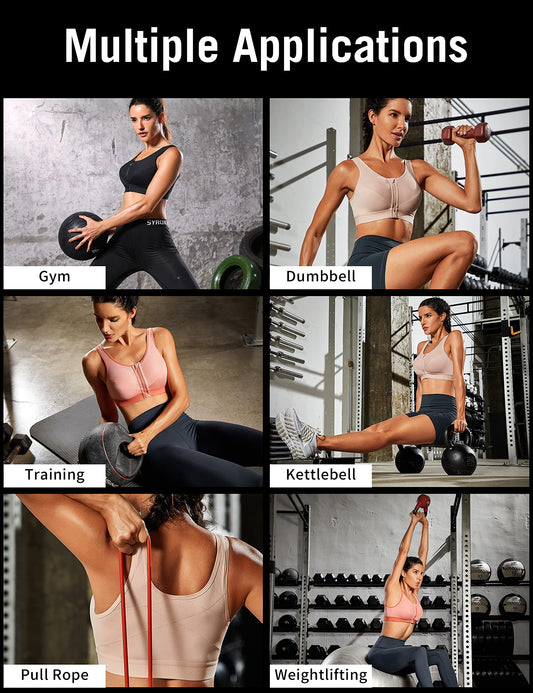 SYROKAN Women's Zip Front High Impact Wireless Racerback High Support Zipper in Front Sports Bra White 36D