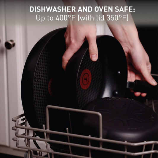 T-fal Signature Nonstick Cookware Set 12 Piece, Oven Broiler Safe 350F, Pots and Pans, Kitchen Cooking Set w/Fry Pans, Saucepans, Saute Pan, Dutch Oven, Griddle, Kitchen, Home, Dishwasher Safe, Black