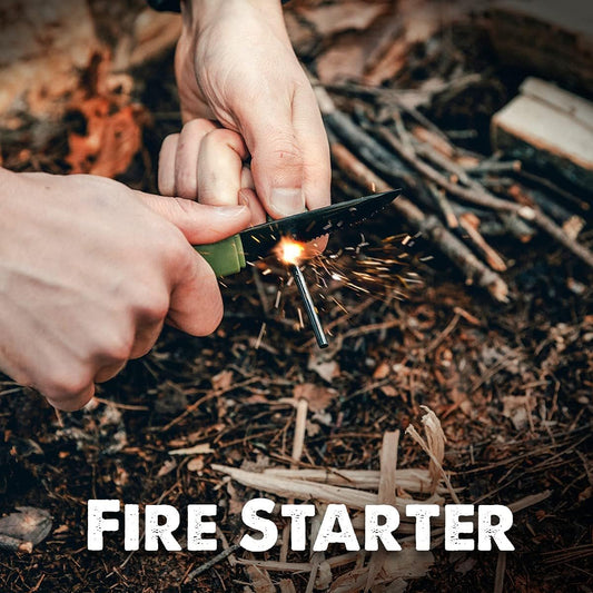 Tapirus Spork Tactical Green | BPA Free Spoon Fork, Stainless Steel Knife and Fire Starter | 3 in 1 multipurpose utensil | Outdoor hiking, camping & backpacking gear | Fit for MRE