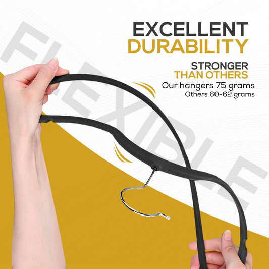 TECHZOO 50 Pack New Premium Quality Velvet Hangers Ultra Thin Non Slip Adult Felt Space Saving Hangers for Closet Heavy Duty Coat Pants Jackets Dress Hangers 360° Swivel Hook Hold Upto 10 lbs Black