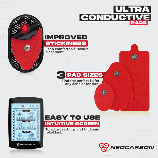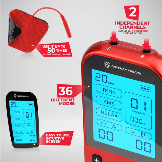 TENS Unit Muscle Stimulator Pro for Back Pain Relief, Shoulder Recovery and Physical Therapy, Electronic EMS Massager Machine with PMS Pulse for Effective Shock Therapy, Red