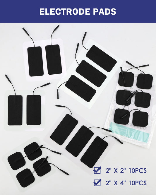 TENS Unit Replacement Pads, Nursal Reusable Self-Adhesive Electrodes Pads 20 Packs 2x2” 2x4”, Latex Free Pigtail TENS Pads, Compatible with TENS 7000, AUVON TENS, Etekcity, Nicwell Care Tens