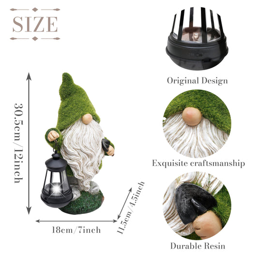 TERESA'S COLLECTIONS Christmas Outdoor Statue for Home, Resin Gnome Decorations with Solar Outdoor Lights for Garden Decor,Green Garden Sculptures & Statues for Front Patio Lawn, Gifts for Mom,12"