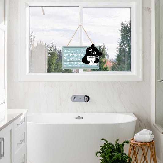 TOARTi Funny Bathrooms Decor Black Cats Welcome to The Bathroom Wood Sign A Cat Will Be with You Shortly Black Cat Bathroom Wooden Hanging Sign for Toilet Powder Room Restroom Wall Decoration
