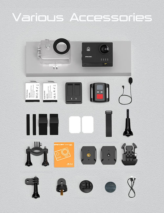 Apexcam Action Camera 4K Sports Cameras 20MP 40M 170°Wide-Angle WiFi Waterproof Underwater Camera with 2.4G Remote Control 2 Batteries 2.0'' LCD Ultra HD Camera with Mounting Accessories Kit