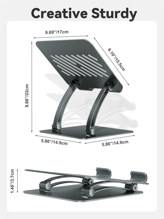 tounee Tablet Holder Stand, Dual Rod Adjustable Aluminum Desktop Stand, Compatible with 4.7-16.5" iPads, Surface Tablets, Portable Monitors, Kindle & More (Gray)