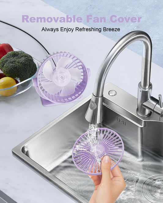 TriPole Desk Fan USB Powered Small Portable Fan, 3 Speeds Adjustable Strong Breeze Mini Personal Fan, 360° Rotation Quiet Plug In USB Fan for Desktop Bedroom Office Table Travel, Purple, 4.9ft Cable