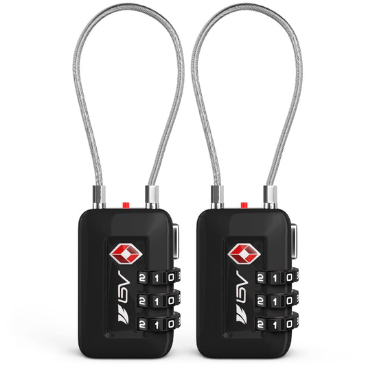 TSA Approved Cable Luggage Locks, Re-settable Combination with Alloy Body, Black 2 Locks.