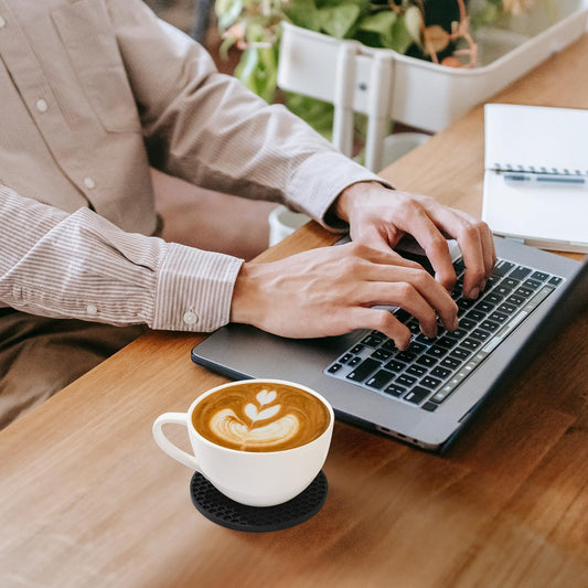 TWTLi Silicone Coasters Set of 8 with Holder,Coasters for Drinks,Beer,Coffee Coasters,Suitable for Kinds Cups,Hot or Cold,Anti-SLI,Non-Stick,Anti-Overflow Tabletop Protection and Decor (8 Pcs, Black)