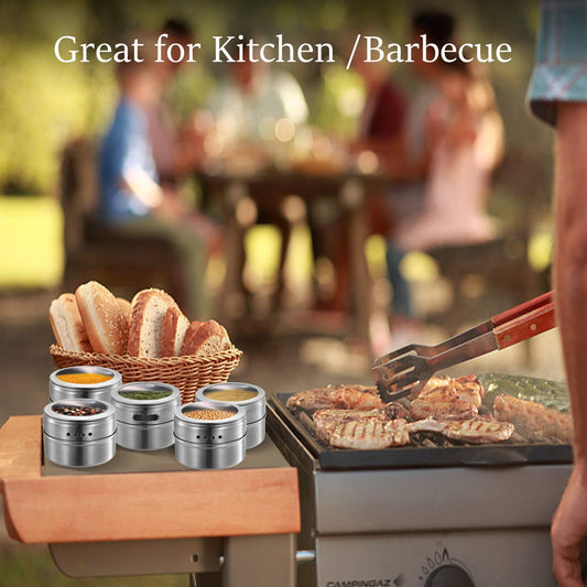 Upgrade Magnetic Spice Jars 12pcs with Wall Mounted,Stainless Steel Spice Tins with Lid and Small Holes for Sprinkle Rust Free Easy to Clean Includes 94 Labeling Stickers by Beeyoka
