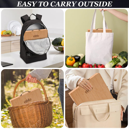 UTCG Bamboo Charcuterie Board Set - Large Folding Cheese Board with Knife Set - Unique White Elephant Gift, House Warming Gift, Wedding Gifts - 22.8 x 11.4 Inches
