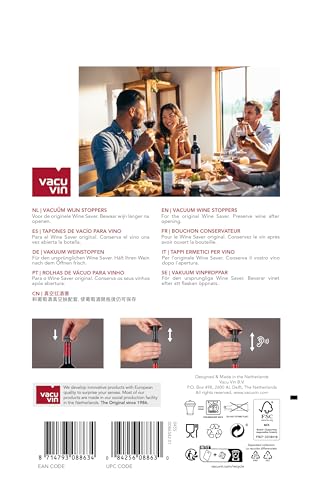 Vacu Vin Wine Saver Vacuum Stoppers – Set of 6 – Gray – Airtight Seal for Opened Bottles – Preserves Wine Freshness Up to 10 Days – Reusable & Dishwasher Safe – For Wine Saver Pump