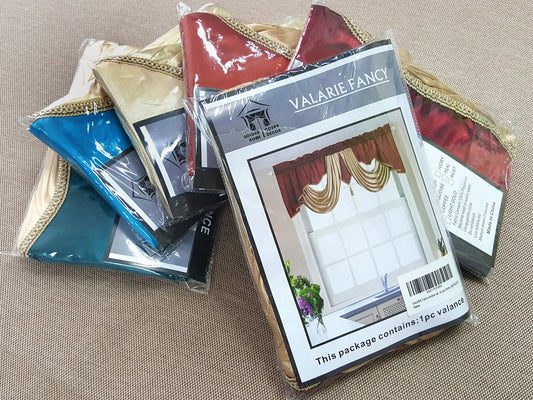 Valarie Fancy Window Valance. 54 x 18 inches. Taffeta Fabric with Soft Satin Swag. Add Some Royal luxruy Accent to Your Home. (Burgundy)