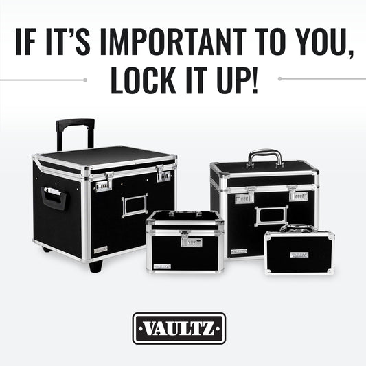 Vaultz Secure Security Lock Boxes - Safe Combination Lock Box, Storage for Documents, Valuables, Medicine & Money - 9.88 x 7.75 x 7 Inch - Black/Chrome