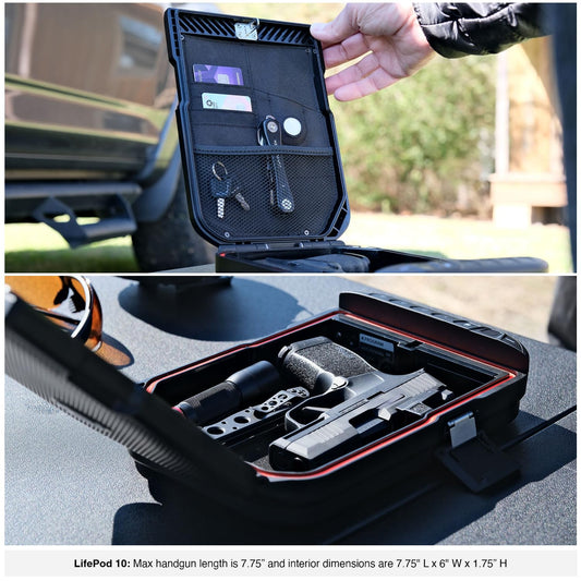 VAULTEK LifePod Secure Waterproof Travel Case Rugged Electronic Lock Box Travel Organizer Portable Handgun Case with Backlit Keypad (Covert Black) (Biometric)