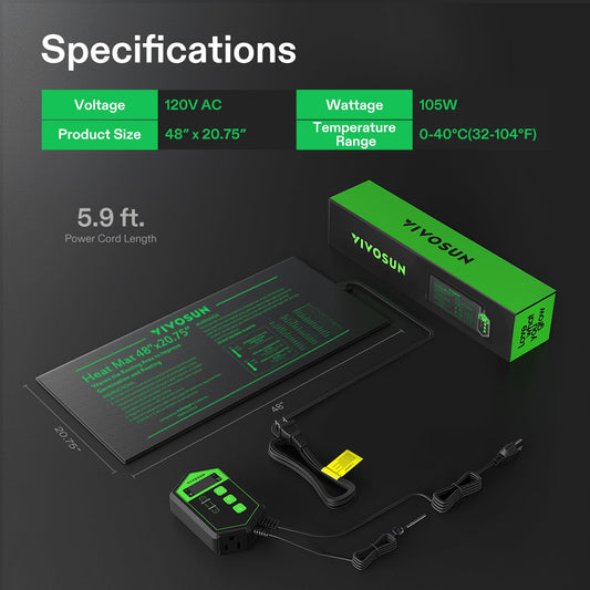 VIVOSUN 48" x 20.75" Seedling Heat Mat and Digital Thermostat Combo Set, UL & MET-Certified Warm Hydroponic Heating Pad for Germination, Indoor Gardening, Greenhouse