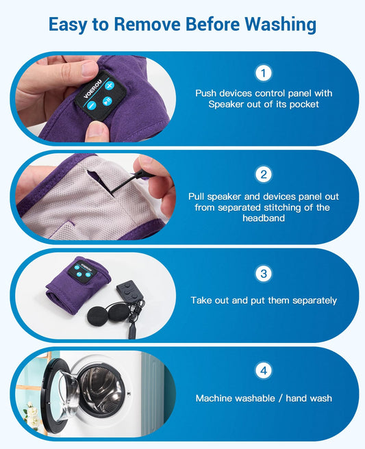 Voerou Sleep Headphones Bluetooth Headband - 10Hrs Adjustable Wireless Sports Sleeping Headphones with Hi Fi Sound, Tech Gifts for Men Women Side Sleepers Office Nap, Travel, Yoga, Workout, Meditation