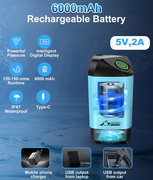 WADEO Portable Shower Camping Shower Outdoor Camp Shower Pump, Electric Rechargeable Portable Camping Shower, Powered by Rechargeable Battery for Camping, Hiking, Traveling