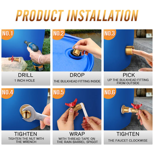 WADEO Rain Barrel Spigot, Brass Water Spigot with Bulkhead Fitting, Rain Water Faucet Kit with Thread Tape
