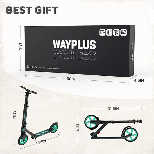 WAYPLUS Aquas Kick Scooter for Kids, Teens & Adults - Foldable, Lightweight, 8-Inch Non-Slip Deck, ABEC9 Bearings, Adjustable Height, Lifetime Service