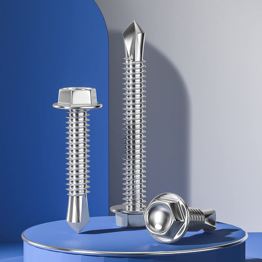 Wensilon (300Pcs) #8×3/4" Hex Washer Head Self Drilling Screws, 410 Stainless Steel Metal SheetScrews,TEK Screws, Sheet Metal Self Tapping Screws
