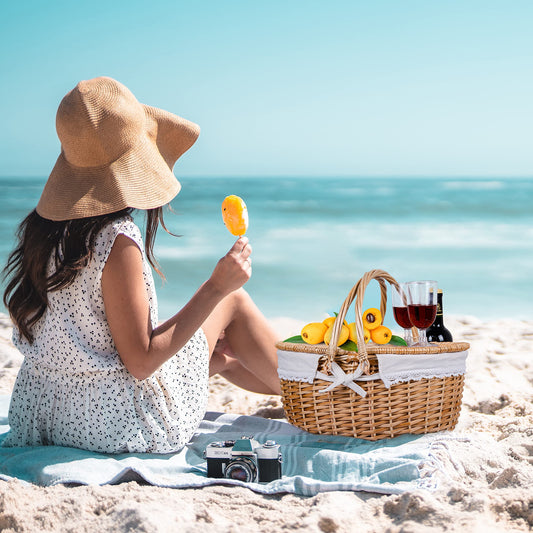 Wicker Picnic Basket for 2 with Waterproof Picnic Blanket, Picnic Set for 2 with Sand-Proof Beach Mat,Willow Hamper Service Set for Camping and Outdoor Party