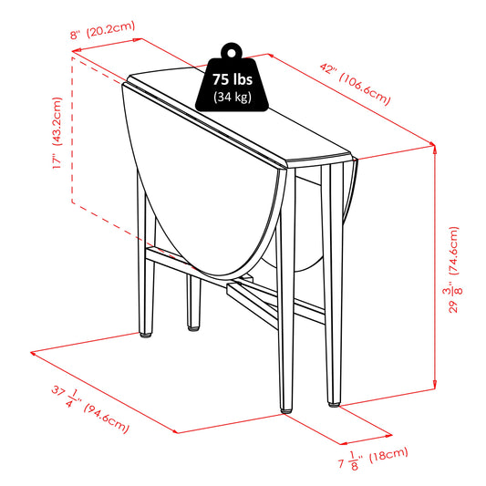 Winsome Taylor Drop Leaf Table with Wide Drawer, for Dining Room, 29", Walnut