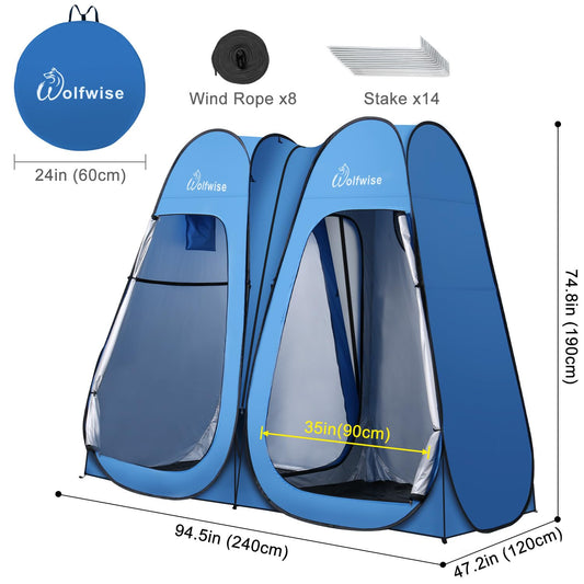 WolfWise 2 Room Pop Up Shower Privacy Tent Dressing Room Sun Shelter for Outdoor Camp Toilet Camping Biking Fishing