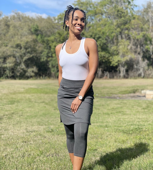 Women's Modest Skirted Capri Pants with 2 Pockets Workout Knee Length Skort Cropped Leggings bk l Black