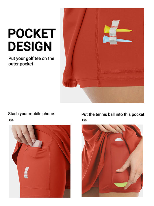 Women Tennis Golf Dress with Built-in Shorts and Bra-Workout Athletic Activewear for Exercise Rose Red