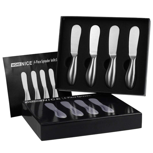 WoneNice Spreader Knife Set, 4-Piece Cheese and Butter Spreader Knives, One-piece Stainless Steel, Gifts for Birthday/Parties/Wedding/Bridal Shower/Housewarming/Thanksgiving/Christmas