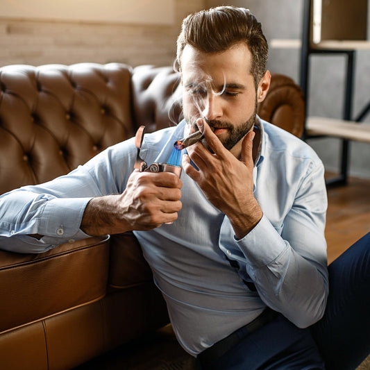 XIFEI Cigar Lighter 4 Jet Flame Torch Lighter with Cigar Holder, Windproof Rocker Arm Lighter Adjustable Flame, Refillable Butane Lighter Smoking Lighters Gift for Men (Bronze)