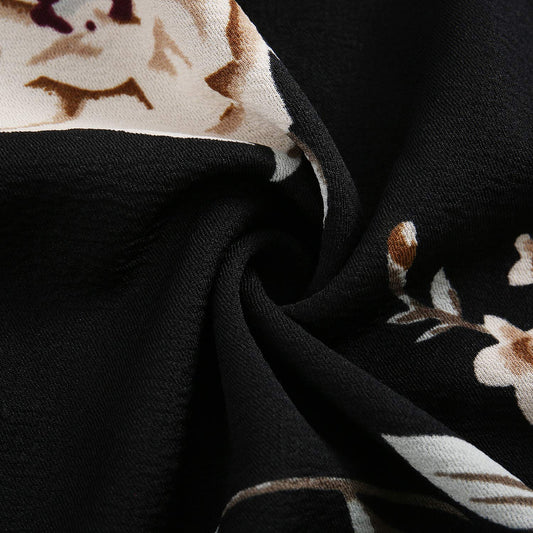 YATHON Women's Vintage Floral Flared A-Line Swing Casual Party Dresses with Pockets (YT018-Black Khaki 02-3/4, l)