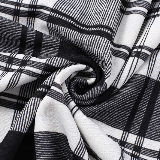 YATHON Women's Black Plaid Travel Business Casual Dresses Vintage Fit and Flare Pleated Stretch Long Sleeve Work Fall Winter Dress with Pockets (L, YT018-Black Grid-Long)