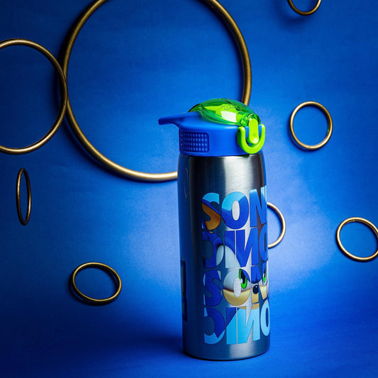 Zak Designs Sonic the Hedgehog Water Bottle for Travel and At Home, 19 oz Vacuum Insulated Stainless Steel with Locking Spout Cover, Built-In Carrying Loop, Leak-Proof Design (Sonic)