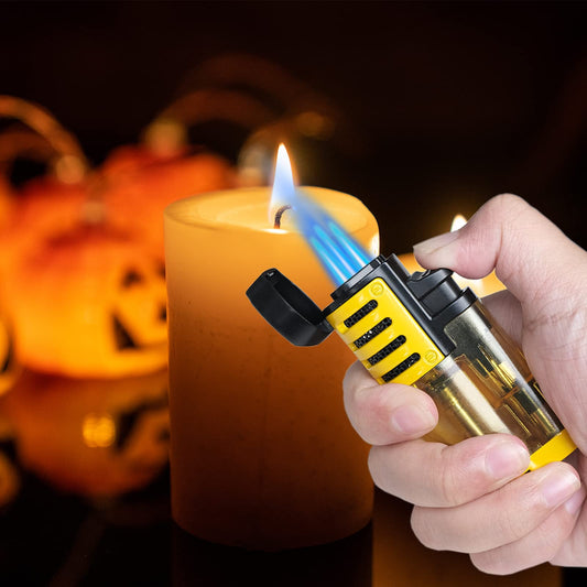 Zoocura Torch Lighter 2 Pack Triple Jet Flame Butane Torch Lighters Refillable Butane Gas Lighters Windproof Adjustable 3 Flame Lighter for Christmas (Without Gas)
