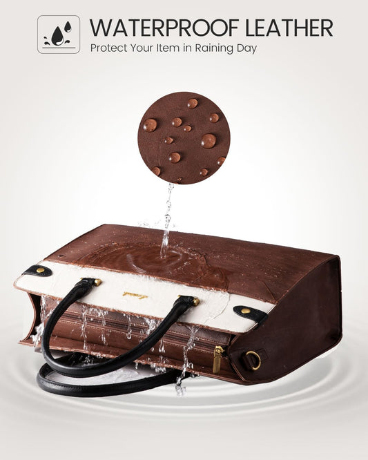 S-ZONE Vintage Genuine Leather Shoulder Bag Work Totes for Women Purse Handbag with Back Zipper Pocket Large