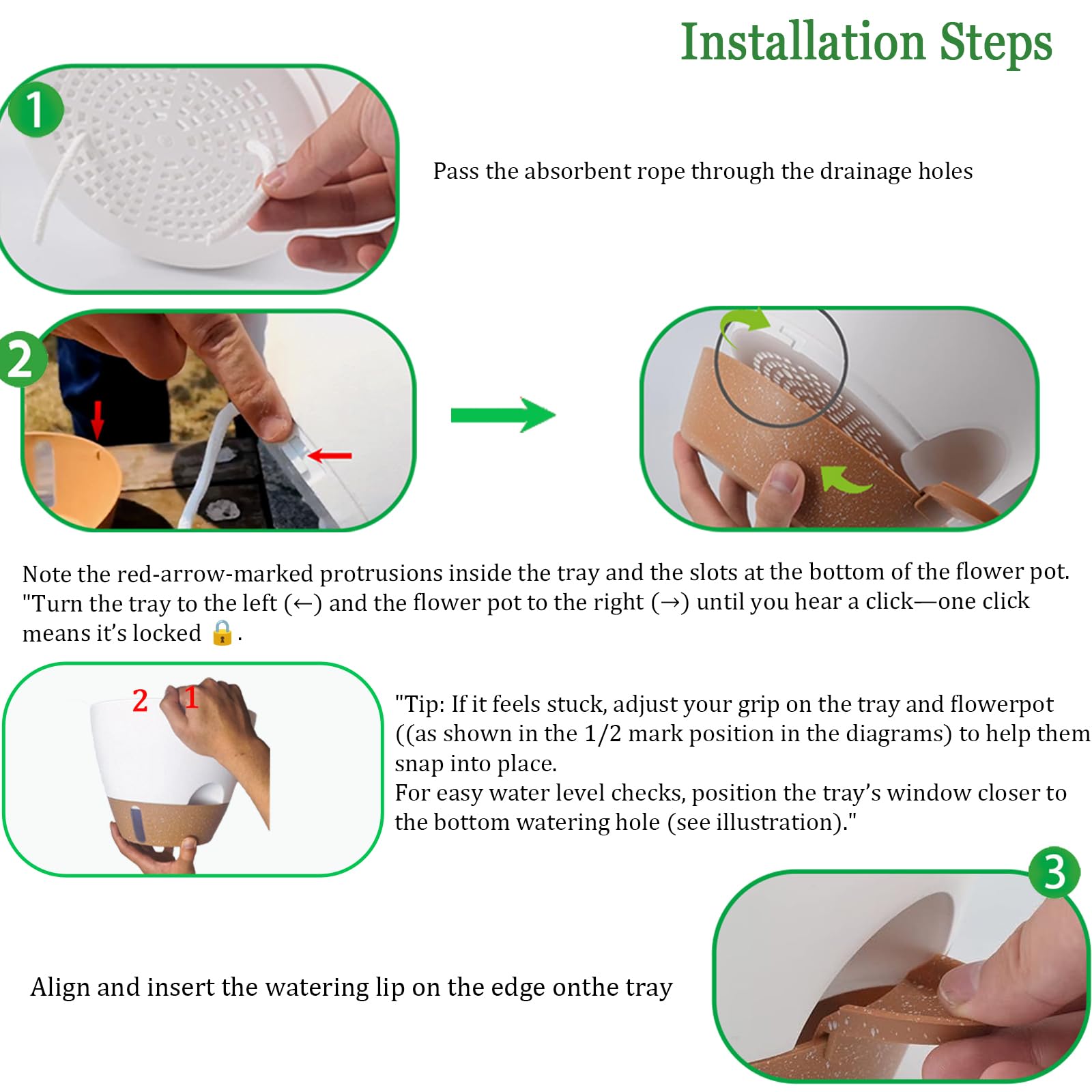 • 【Smart Self-Watering System】 Our hanging plant pots come with a REMOVABLE RESERVOIR TRAY that stores 7-10 day water supply. Absorbent cotton ropes automatically deliver moisture to soil when needed - ideal for vacations or busy lifestyles. Spend less time watering hanging baskets for indoor plants!